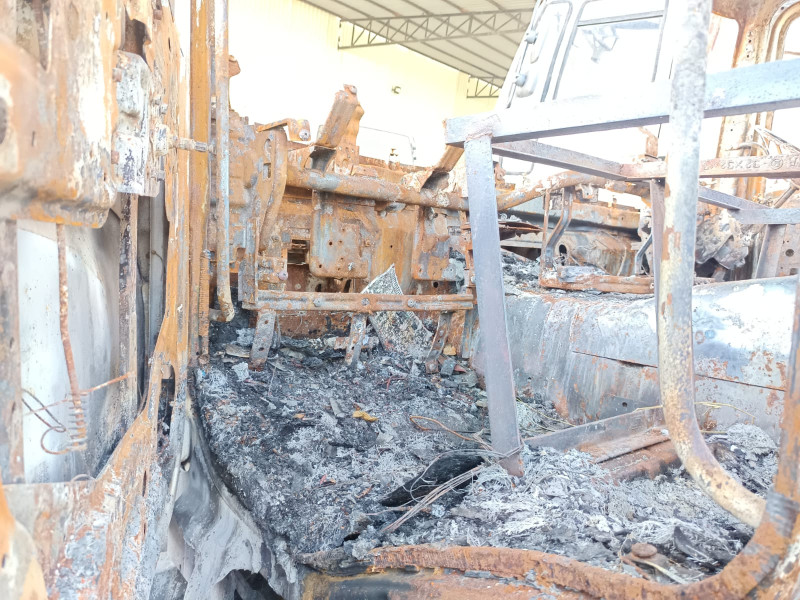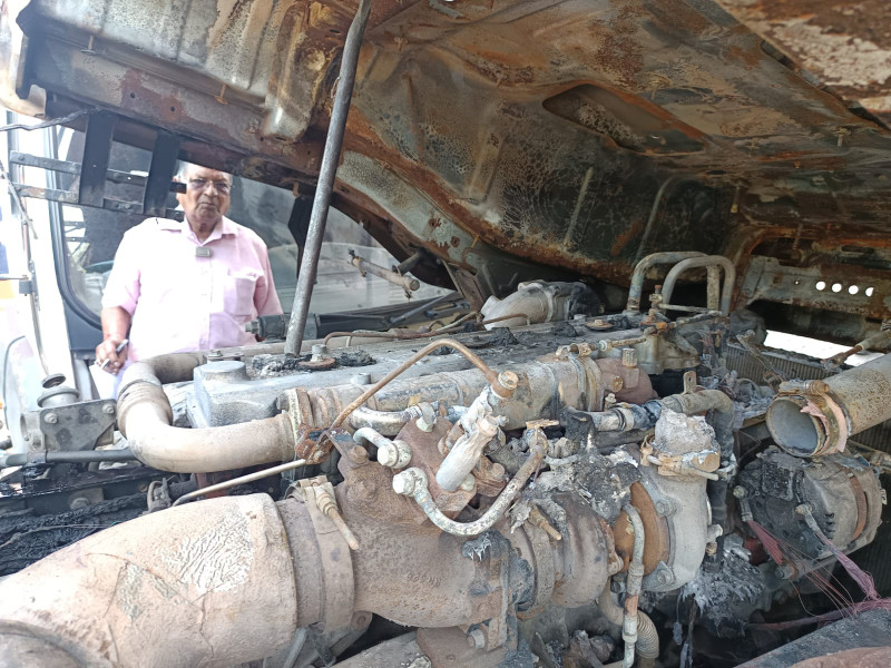 Cabin assembly burnt, bith tyre heated, radiator,